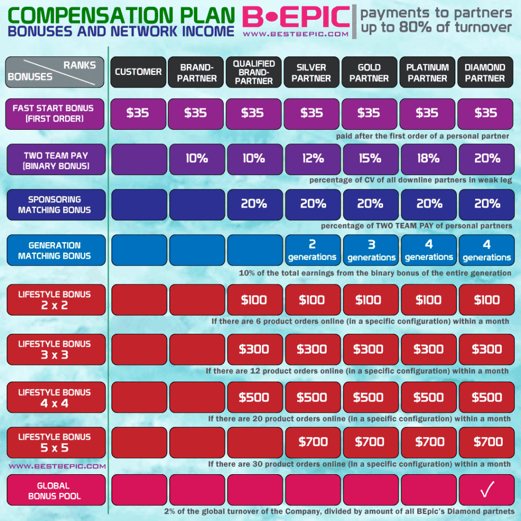 Minden személyesen szponzorált Partnered (mindegy hol van a bináris fában) bináris bónuszának 20-20 %-a. Egyetlen kikötés: heti 4 000 $-nál nem lehet többet kifizetni.
